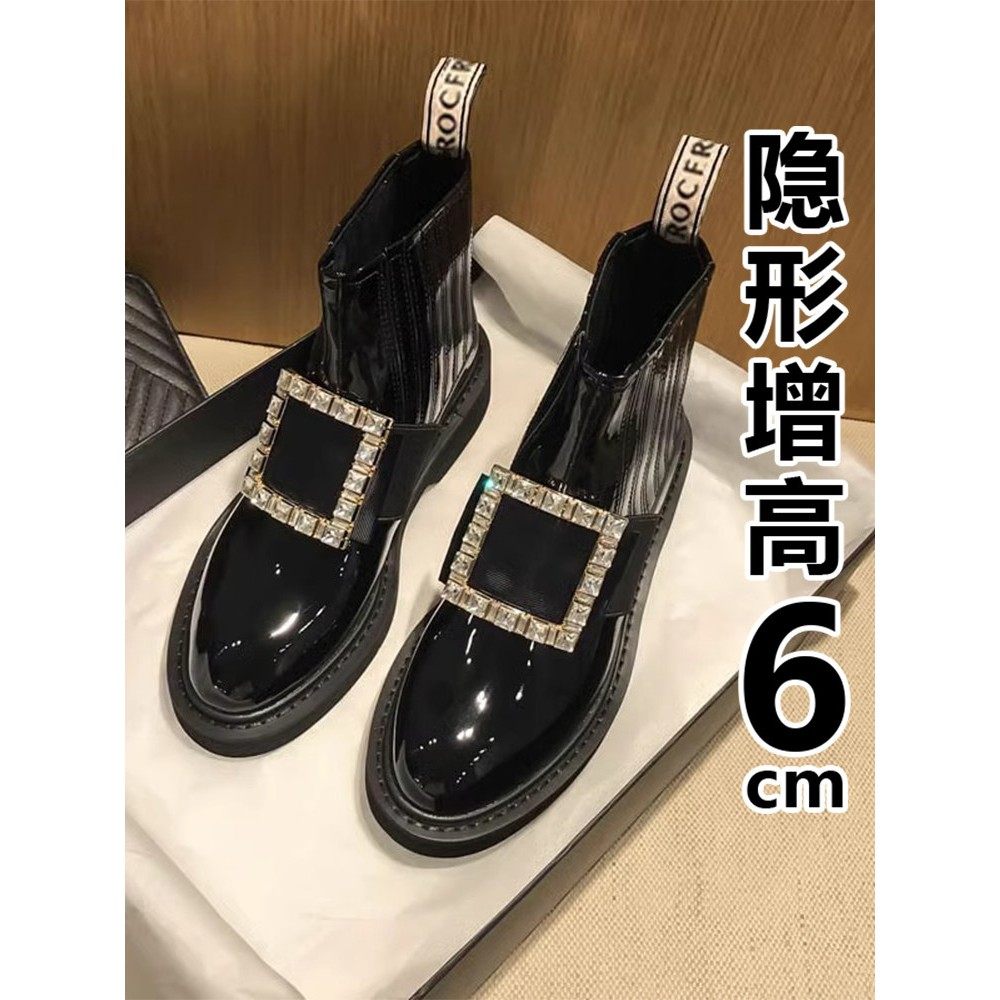 香港2025新款切尔西平底靴莱茵石方扣英伦风格靴子摩托车短靴女子