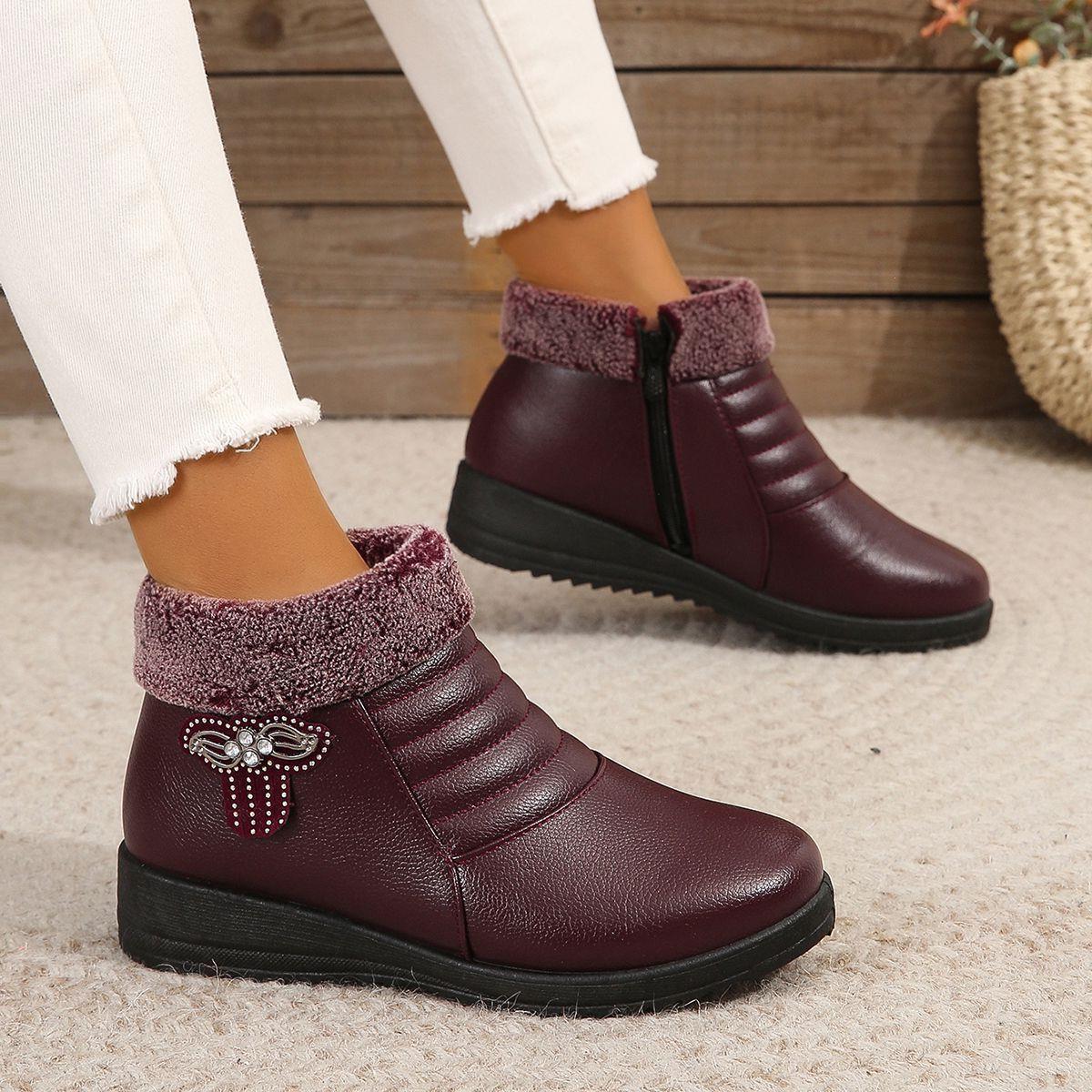 保暖妈棉鞋老鞋2软025加绒靴子妈女士短靴底防滑懒人皮鞋中年女子