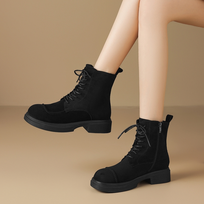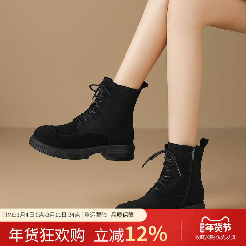 【专柜同款】厚底短靴子女秋冬季加绒靴子马丁靴女子加绒短靴女靴