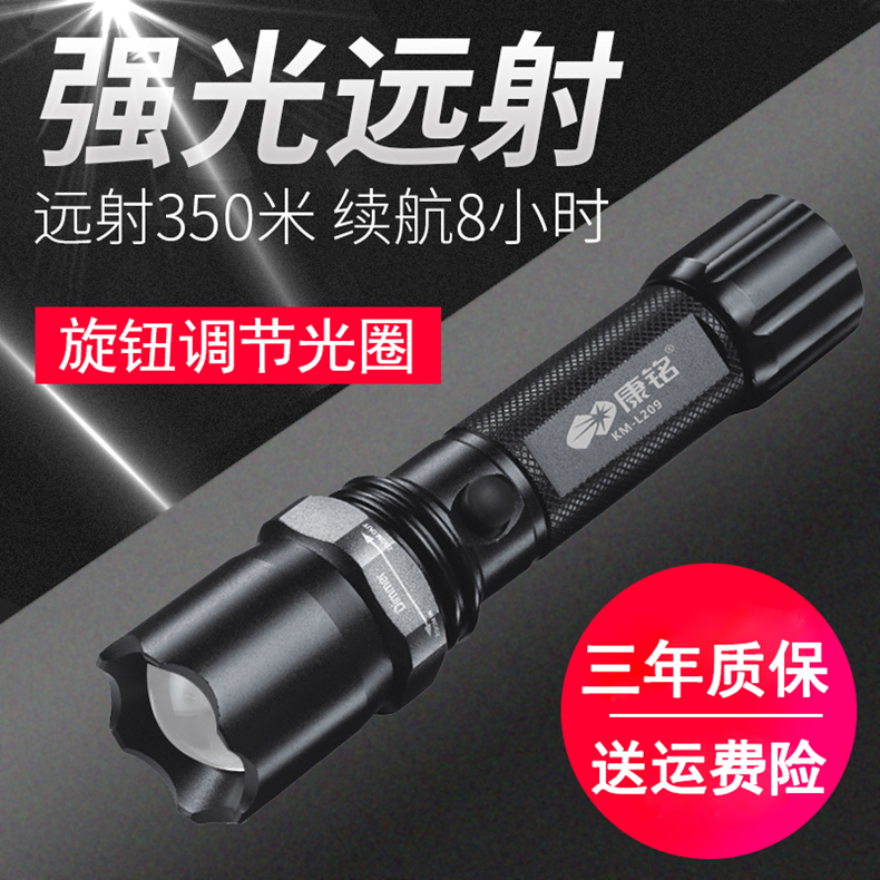 康铭KM-L209A户外手电筒强光充电超亮迷你便携多功能家用