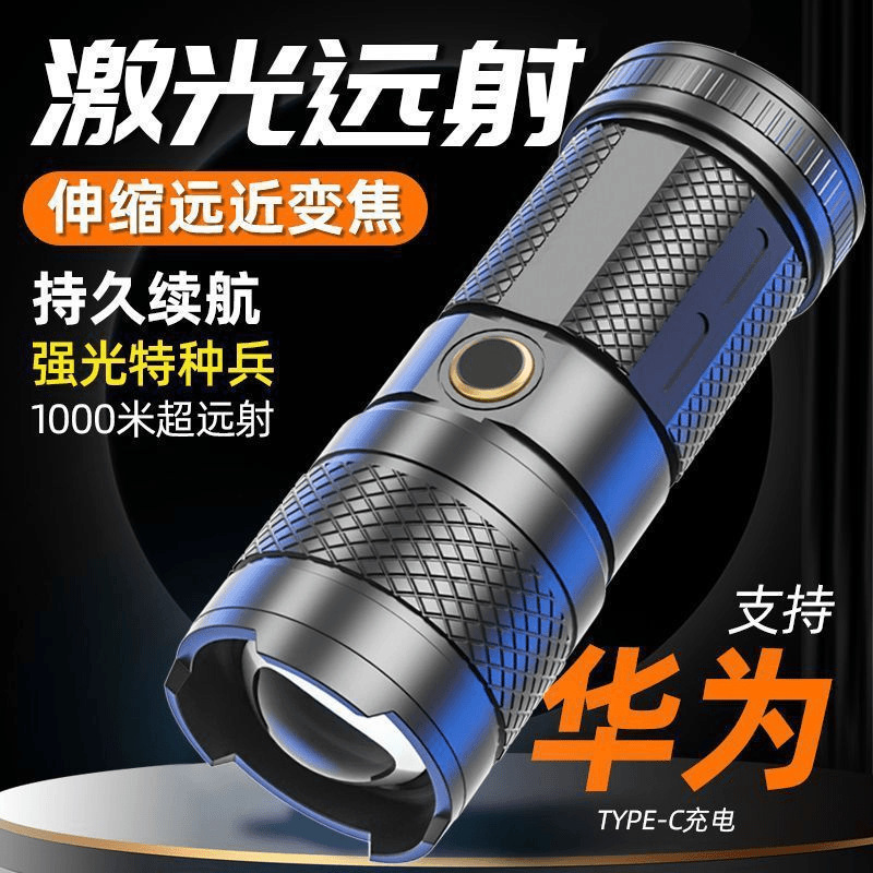 手电筒强光充电式小型便携超亮白激光户外远射多功能家用耐用巡逻