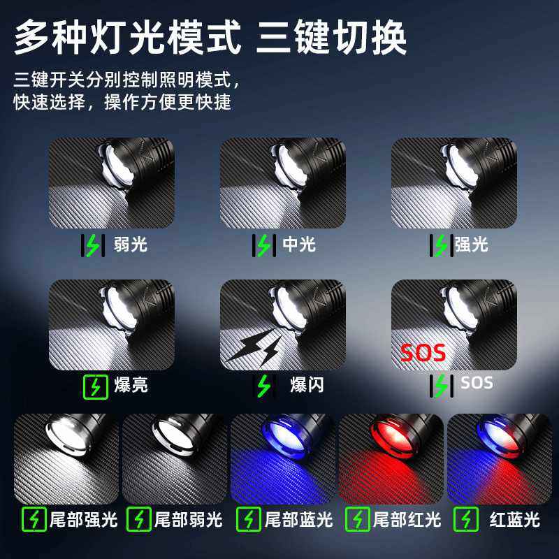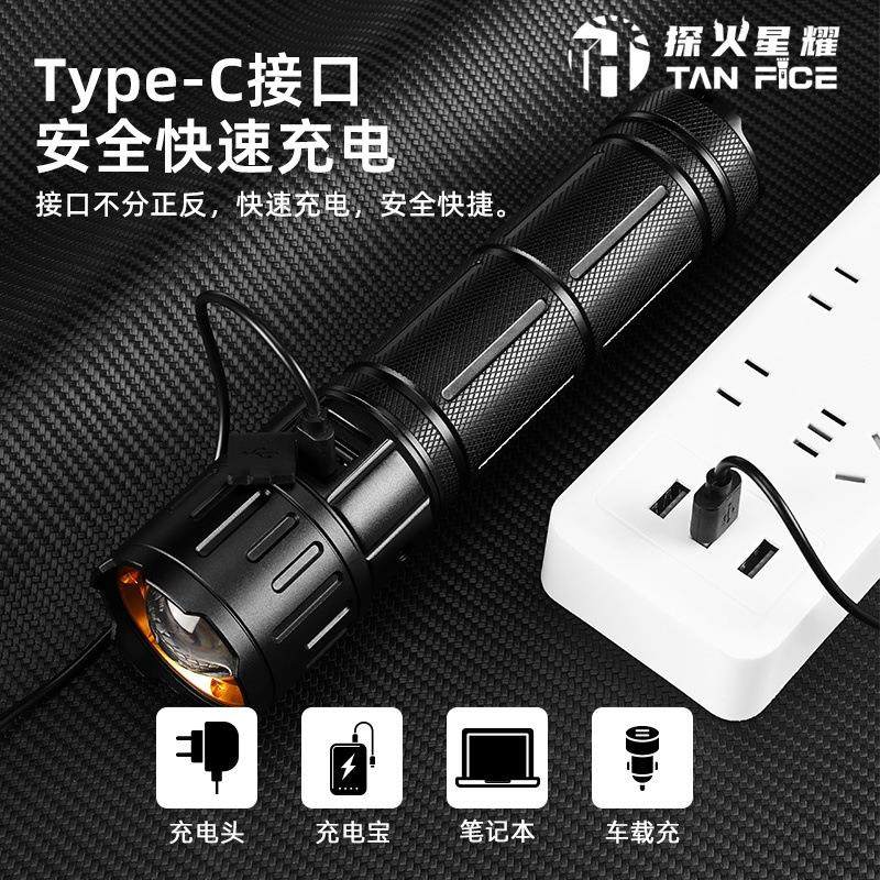 户外手电筒强光充电长续航锂电变焦远射电筒小便携多功能手电耐用