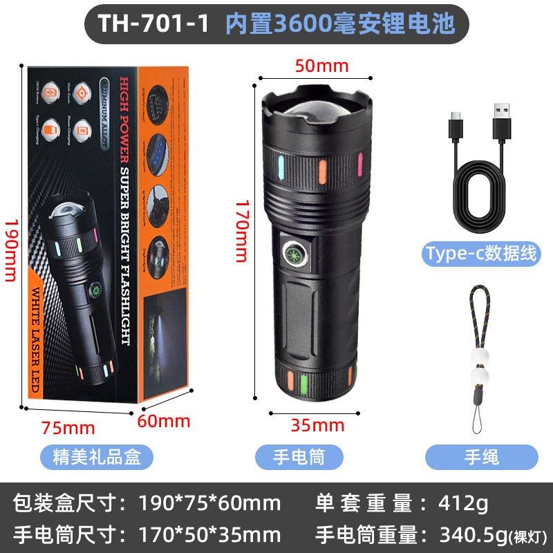 - 手电筒 强光 充电 可