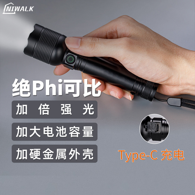 Niwalk户外手电筒强光小型便携充电式长续航2025新款铝合金外壳