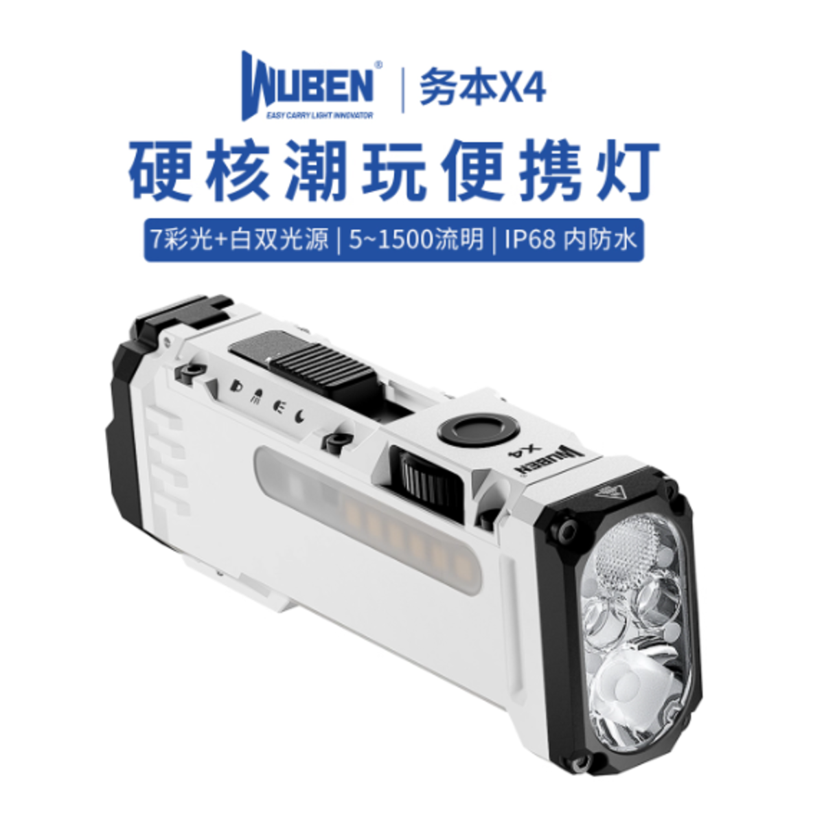 务本X4户外手电筒强光远射侧调光长续航照明RGB磁吸便携防水登山
