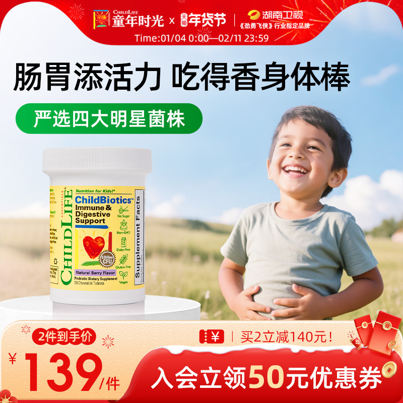 童年时光Childlife宝宝益生菌咀嚼片调理肠胃30片元便秘肠道消化