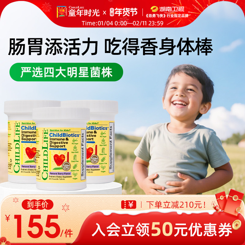 童年时光Childlife宝宝益生菌咀嚼片调理肠胃元便秘肠道消化3瓶
