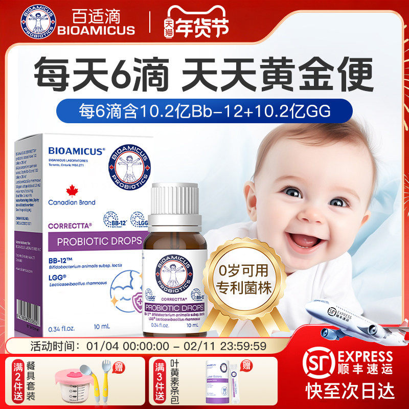 百适滴小月龄0到6个月1岁2两岁宝宝益生菌滴剂丹麦科汉森进口bb12