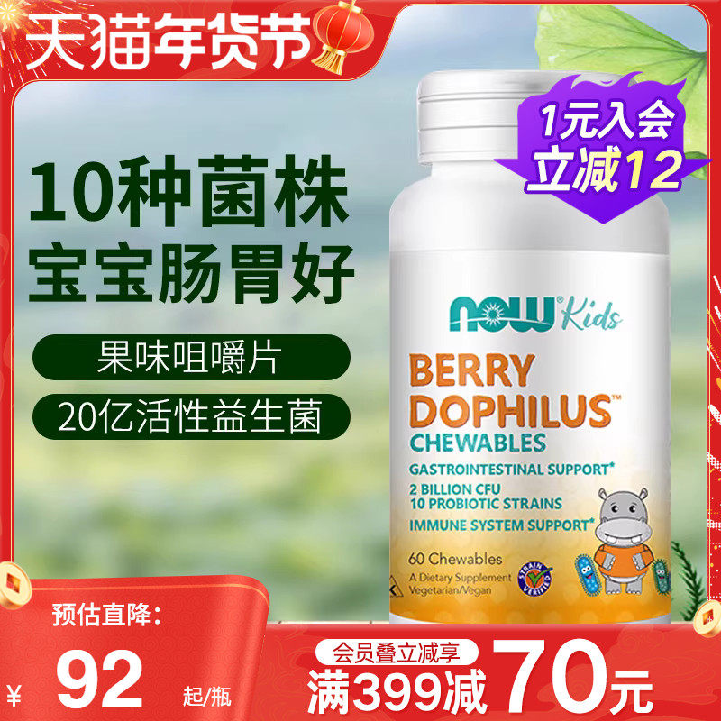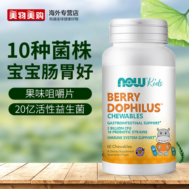 NOWfoods诺奥进口儿童宝宝益生菌咀嚼片肠胃健康调理肠道双歧杆菌