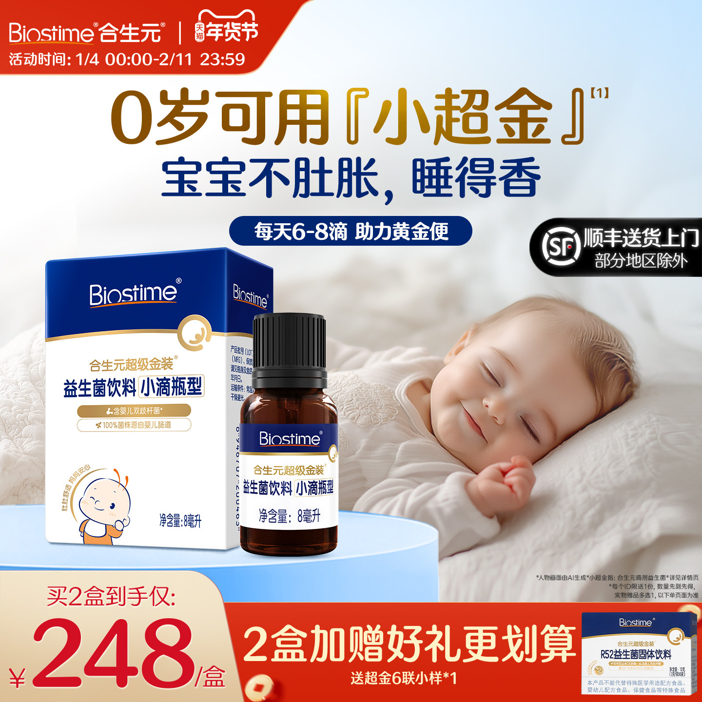 合生元小超金益生菌滴剂婴幼儿宝宝新生含婴儿双歧杆菌儿童0岁用