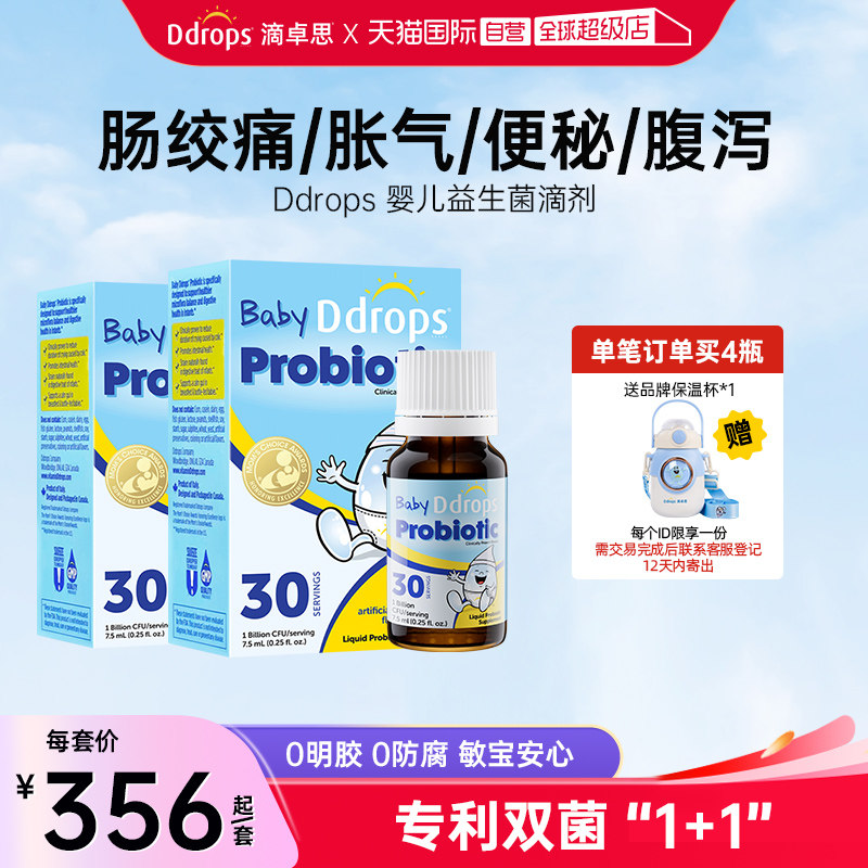 【自营】Ddrops滴卓思儿童肠胃调理肠胀气绞痛宝宝益生菌7.5ml*2