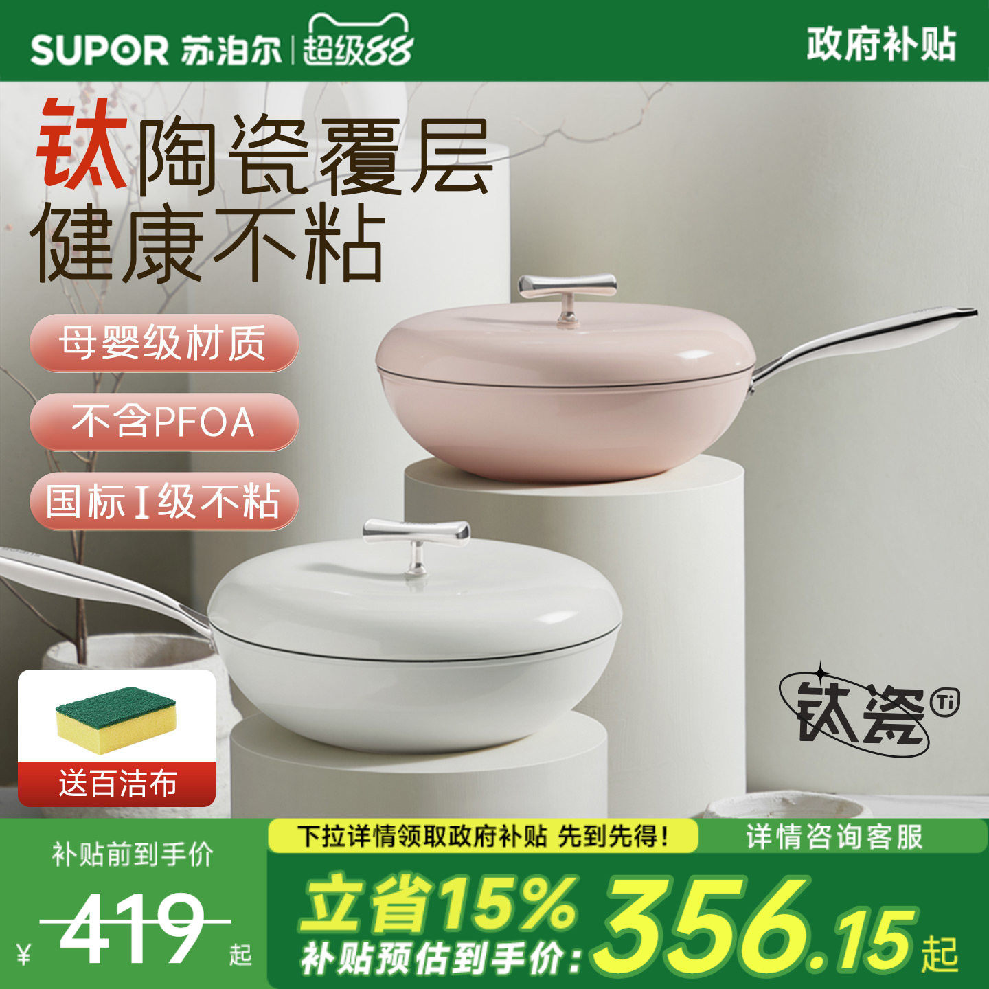 【新品】苏泊尔陶瓷不粘锅婴儿宝宝辅食专用平底锅煎蛋饼小锅家用
