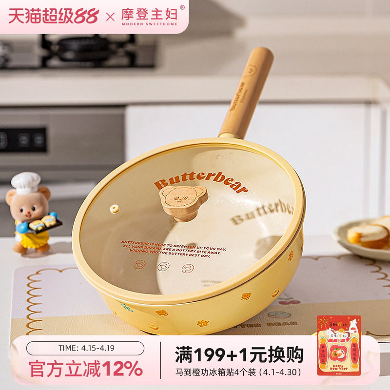 【摩登主妇&黄油小熊】钛陶瓷不粘锅平底煎锅电磁炉专用炒菜炒锅
