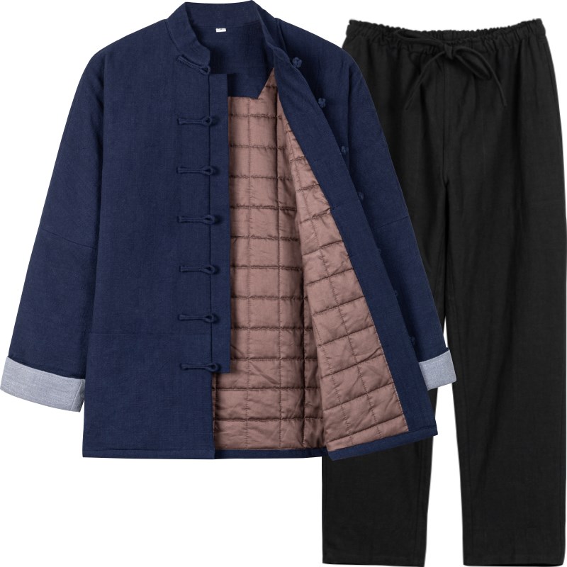 冬棉麻唐装棉袄男中老年中式加厚棉衣棉裤中国风男装复古汉服套装