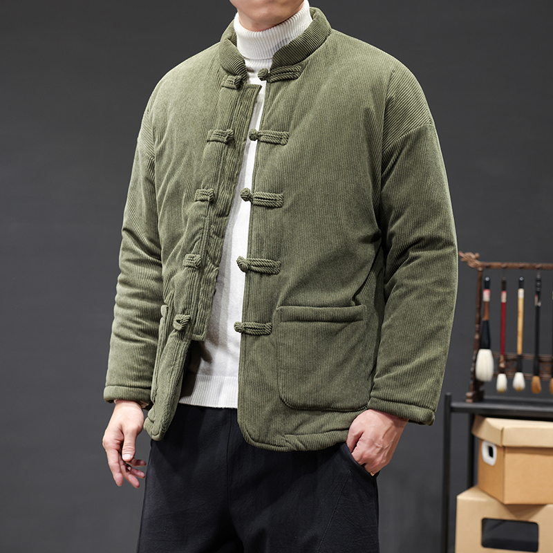 冬季新款唐装棉服男士休闲立领复古加棉外套简约休闲痞帅修身夹克