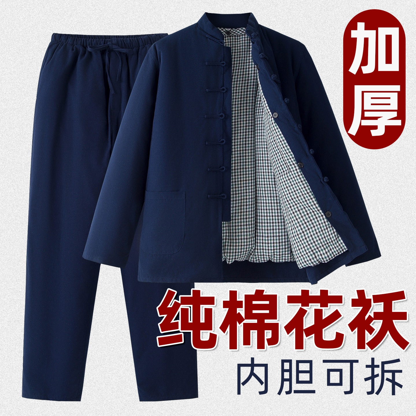中老年唐装棉服男加厚手工棉花棉袄棉裤套装可拆卸内胆棉衣一整套