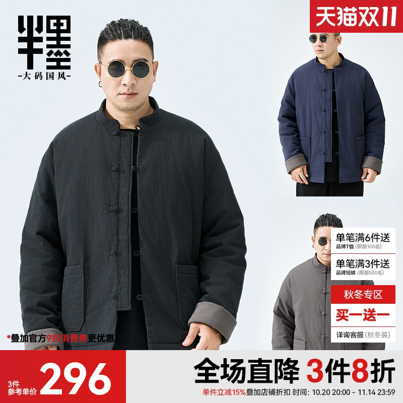 半墨大码男装冬季唐装棉袄男中国风男装中式复古盘扣加厚保暖棉衣