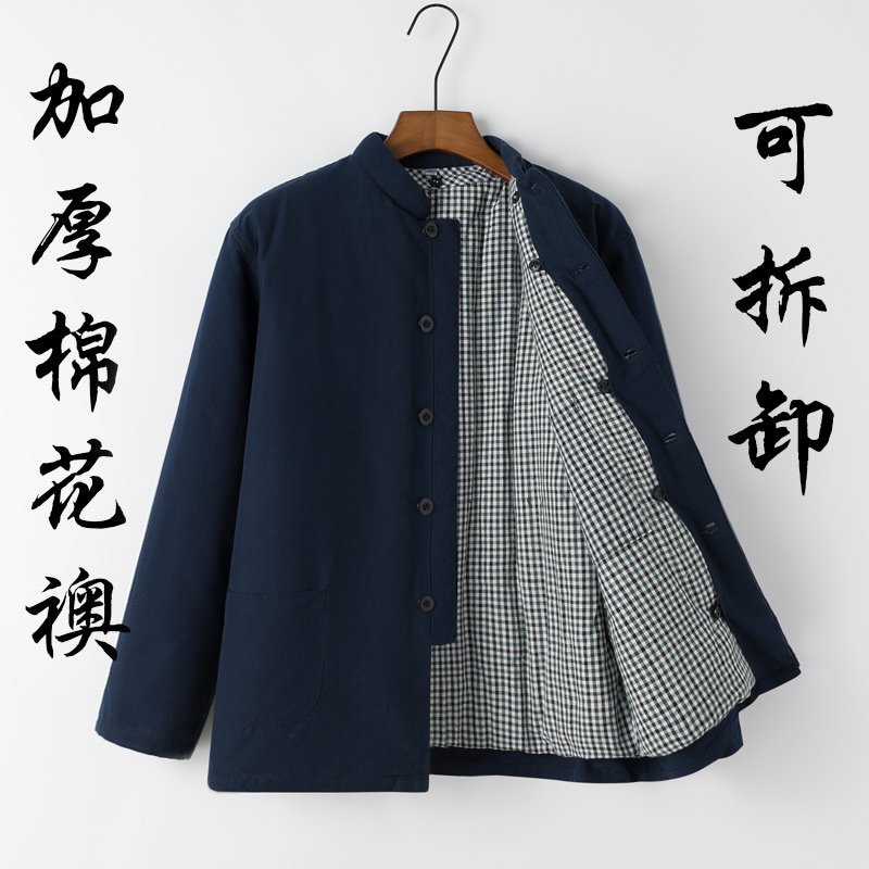 中国风唐装棉袄男中老年棉麻棉衣冬季加厚外套居士服汉服盘扣夹棉