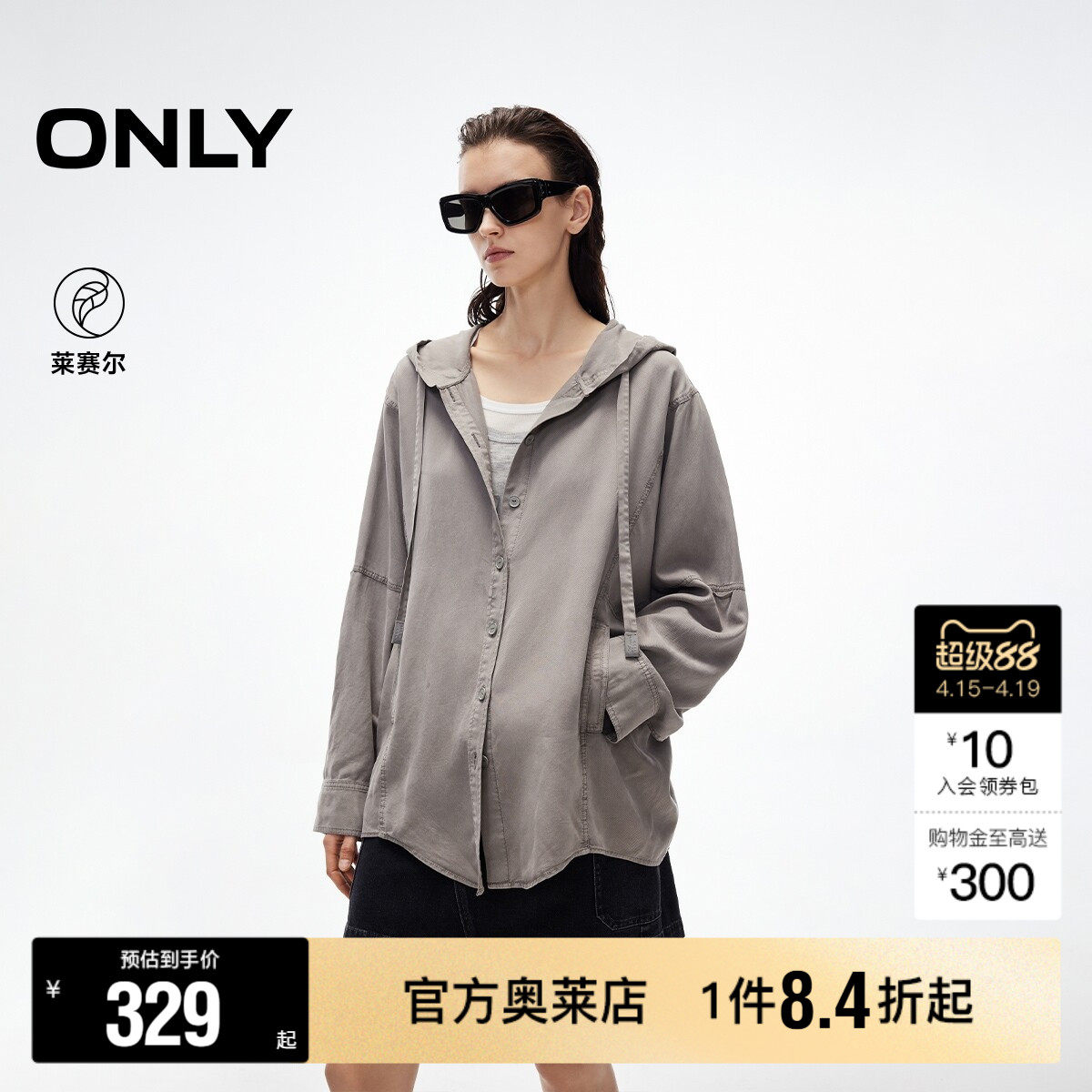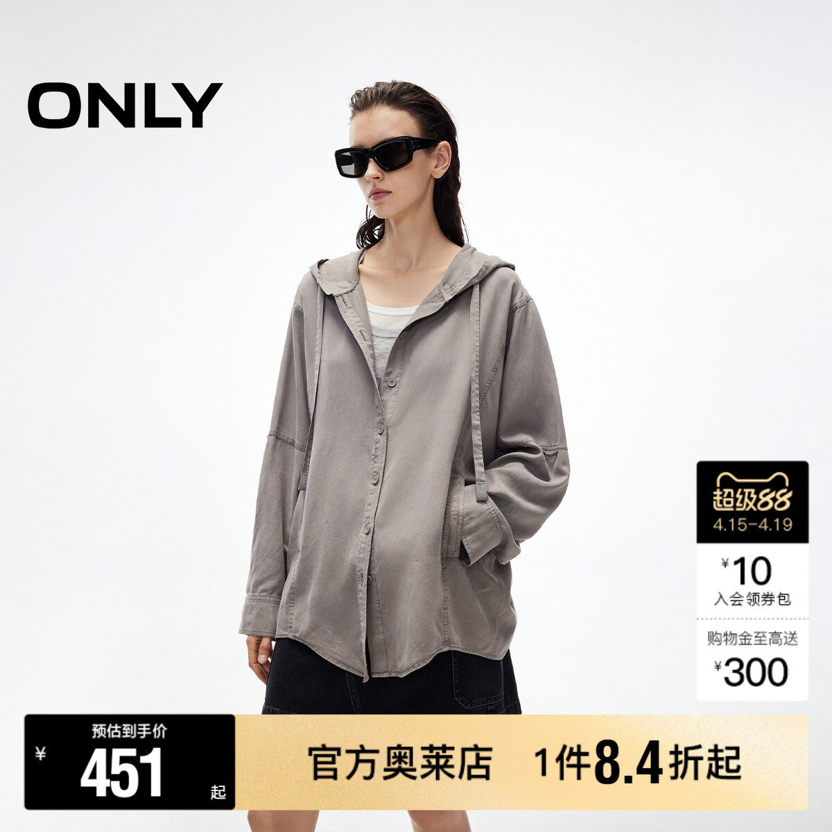 【ONLY奥莱】春款慵懒随性纯色宽松蝙蝠袖连帽可调节长袖衬衫女