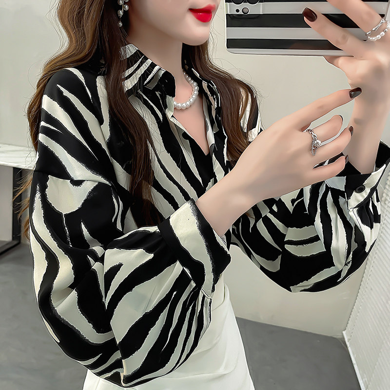 斑马纹印花设计感衬衫小众休闲百搭翻领衬衣宽松蝙蝠袖春款上衣女