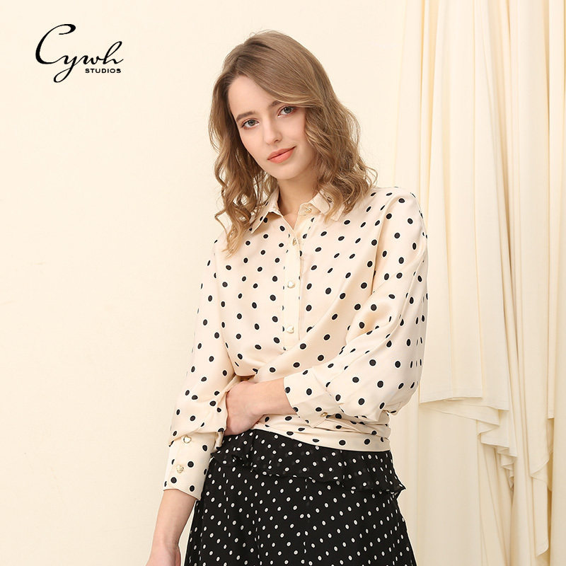 绿色波点印花衬衫女高级感轻奢减龄洋气小衫宽松蝙蝠袖春款上衣女