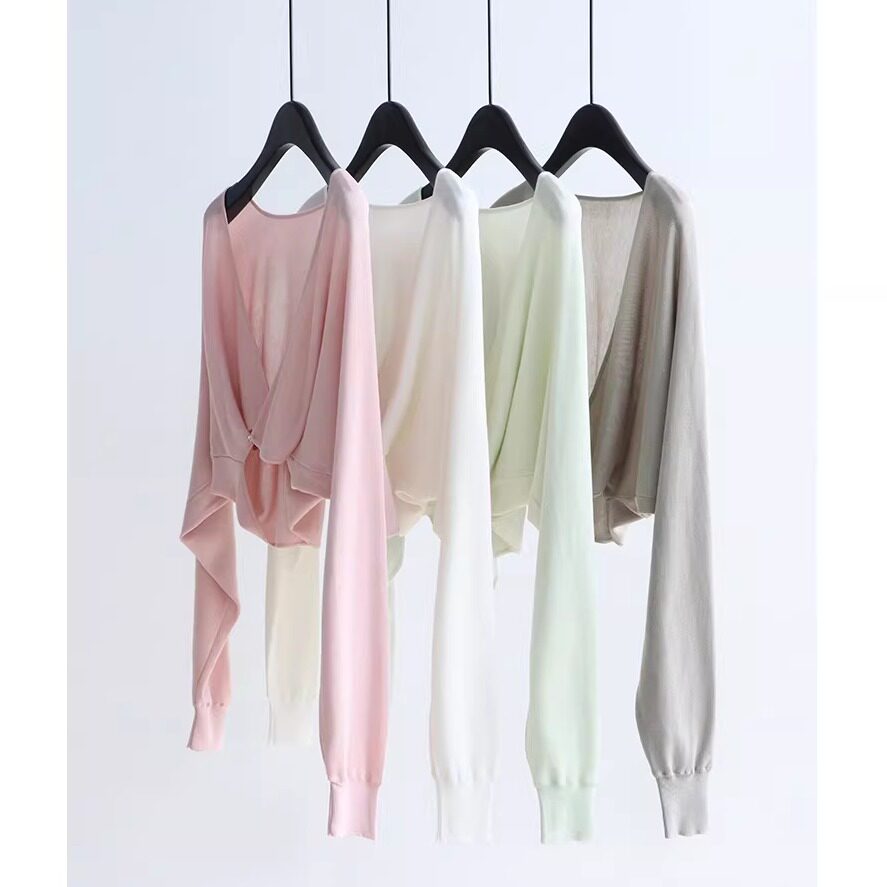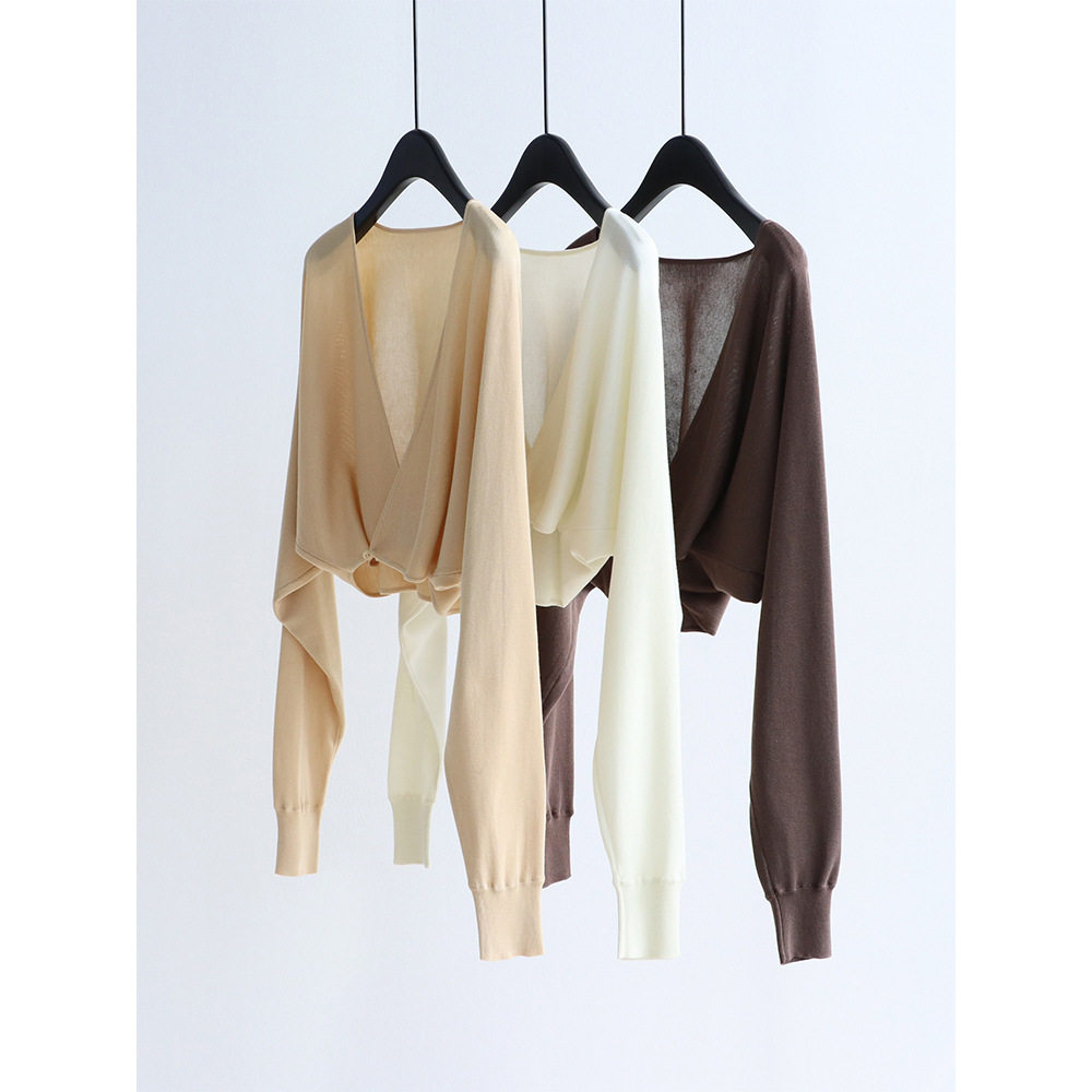 26春款蝙蝠袖交叠搭扣V领针织衫慵懒披肩天丝莱赛尔上衣短款坎肩