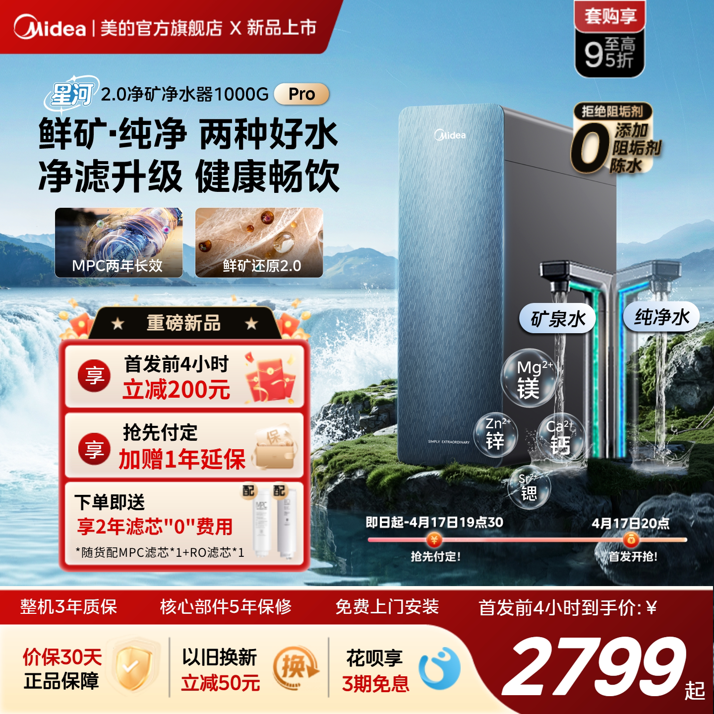 【重磅新品】美的星河2.0净水器净矿1000GPro家用厨下净饮机0阻垢