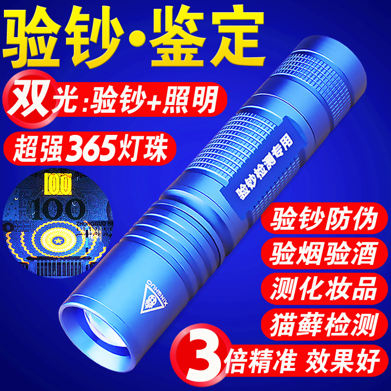 日期篡改防伪紫光灯365nm蓝光手电筒鉴定验证板材验收专用照防伪标荧光剂检测笔紫外线测试笔