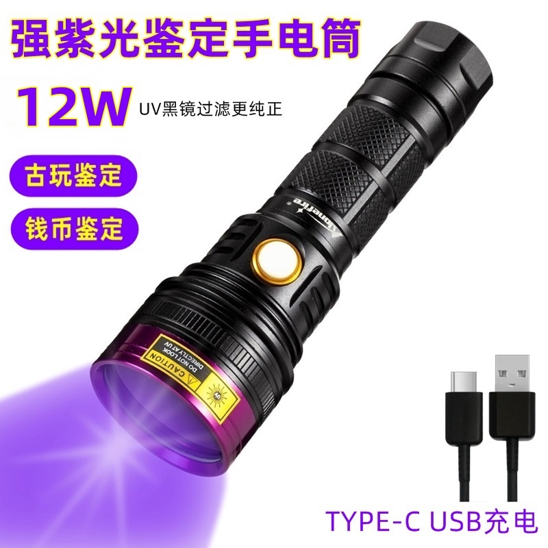 测试荧光剂检测笔琥珀防伪验钞灯鉴定专用365紫光灯紫外线手电筒