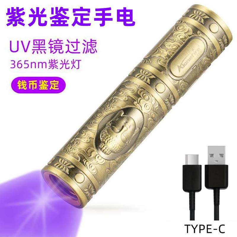 荧光剂检测笔面膜化妆品测试验钞LED手电365nm紫光灯可充电手电筒