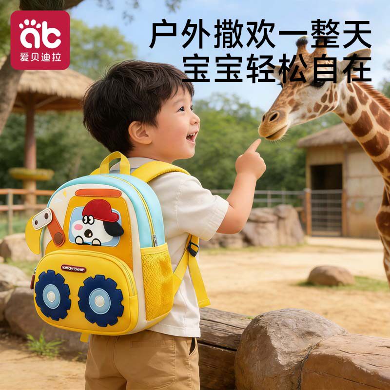 幼儿园书包男童3岁小班蓝色挖土机可爱卡通轻便旅游5岁中大班背包