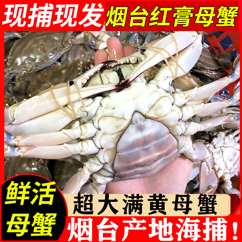 莱州飞蟹鲜活红膏蟹野生母蟹梭子蟹鲜活特大海螃蟹全母满膏黄海鲜
