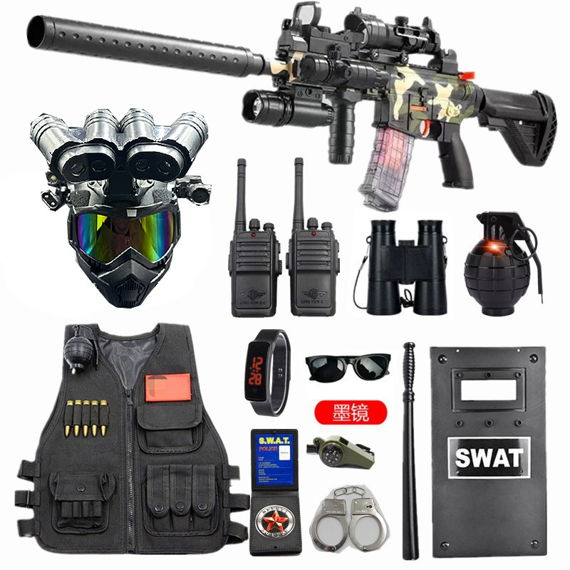小警察套装儿童玩具枪可发射男孩特种兵装备特警衣服冲锋枪软弹枪
