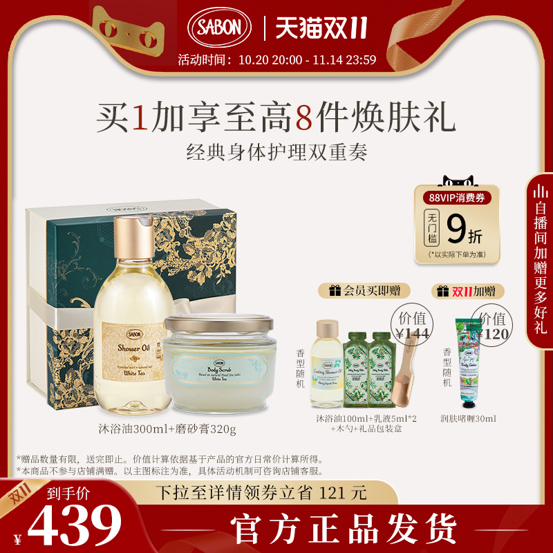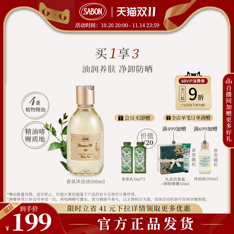 【双11抢购】SABON香氛沐浴油沐浴露新品限定白茶七夕礼物官方