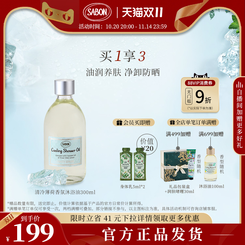 【双11立即抢购】SABON萨邦香氛沐浴油身体精油沐浴露浴液送礼女