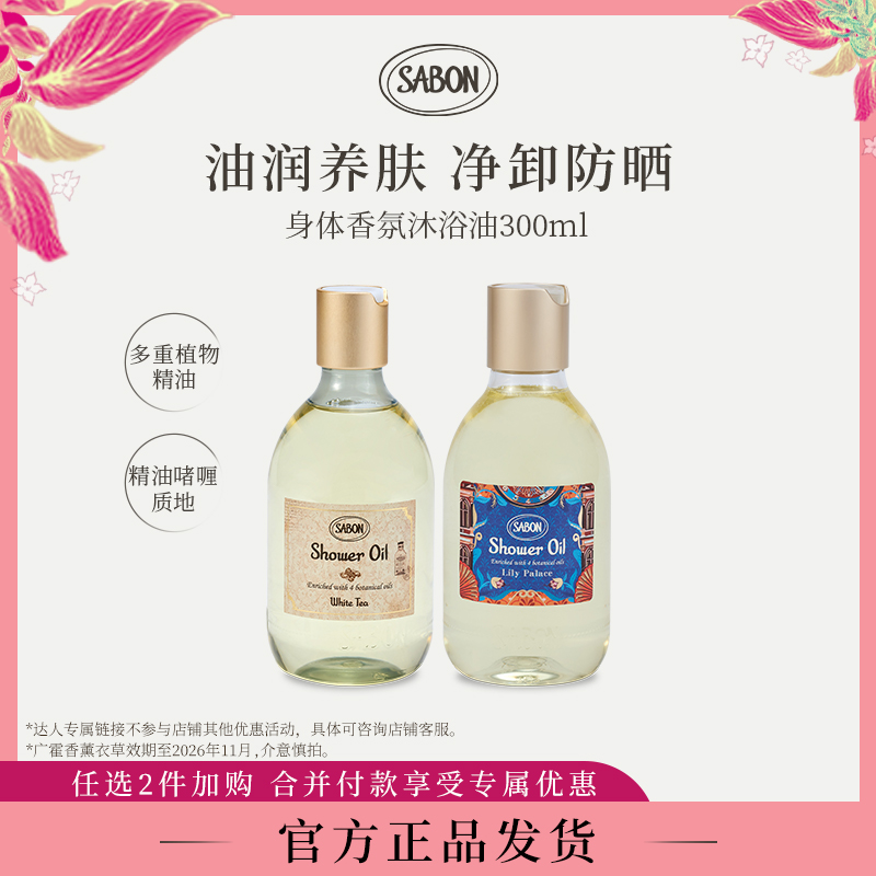 sabon沐浴油白茶绿玫瑰琉璃百合男女通用持久留香清洁洗澡沐浴露