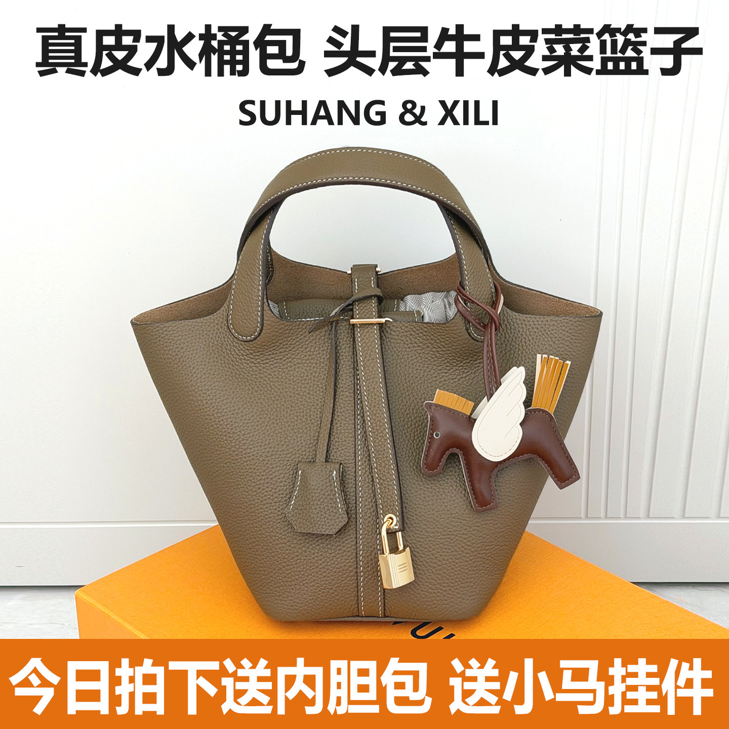 头层牛皮水桶包包2025新款百搭真皮菜篮子女包大容量托特包手提包