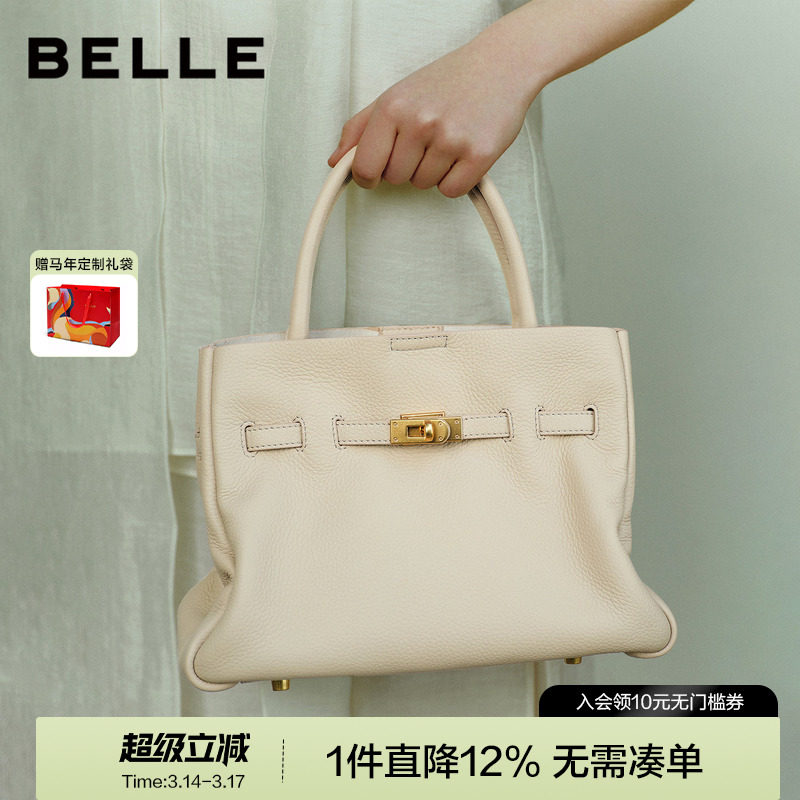 百丽时光沙漏女包2026新款头层牛皮真皮手提包通勤斜挎包包Z9426A