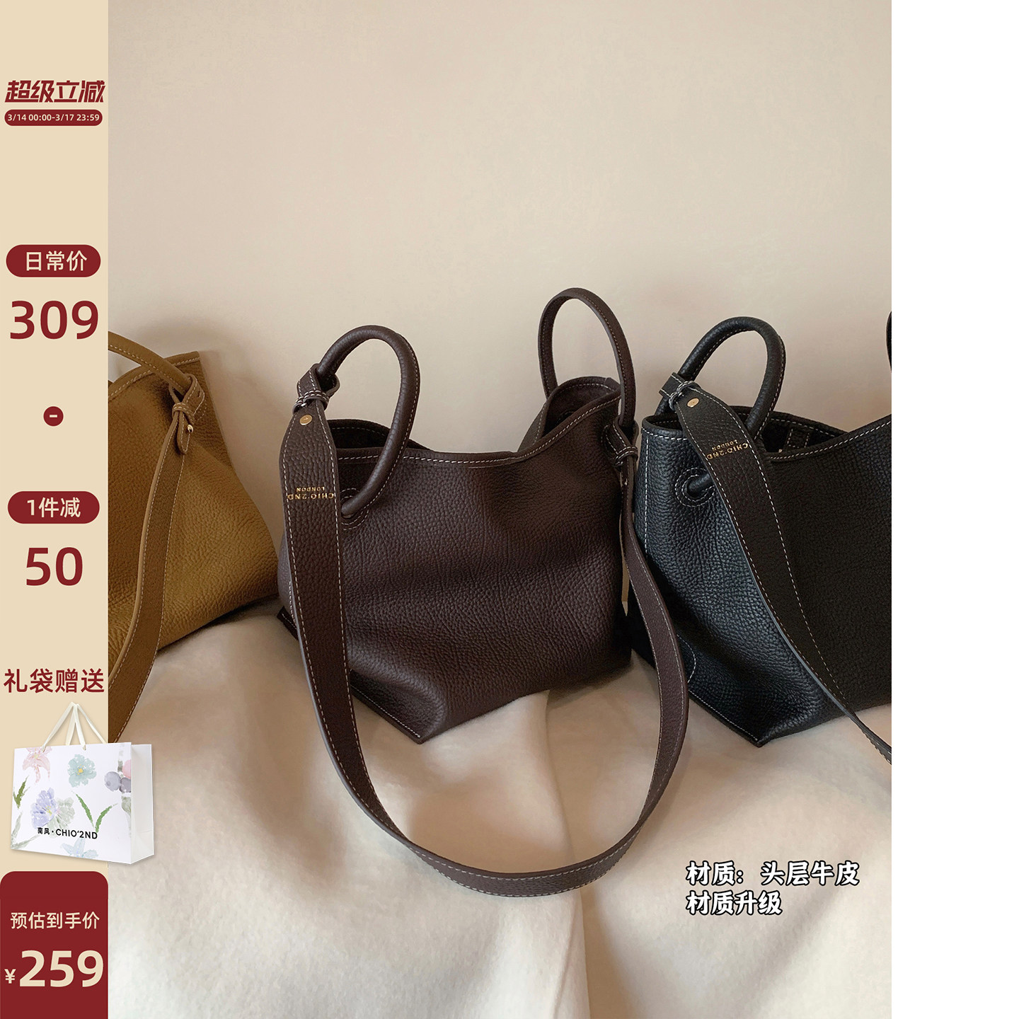 南风Chio2nd 头层牛皮水桶包包女真皮手提包菜篮子通勤单肩斜挎包
