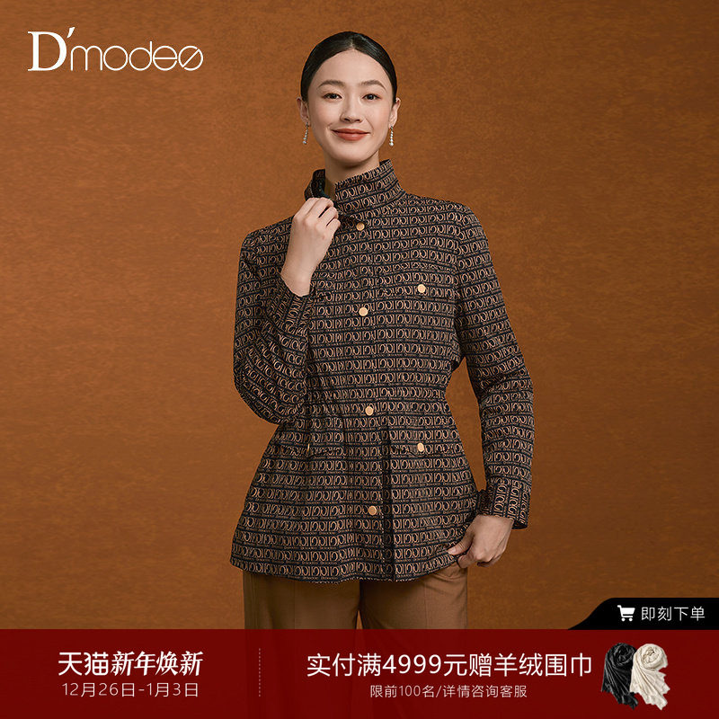 【商场同款】黛玛诗复古通勤风衣女秋设计感几何印花外套DC070083