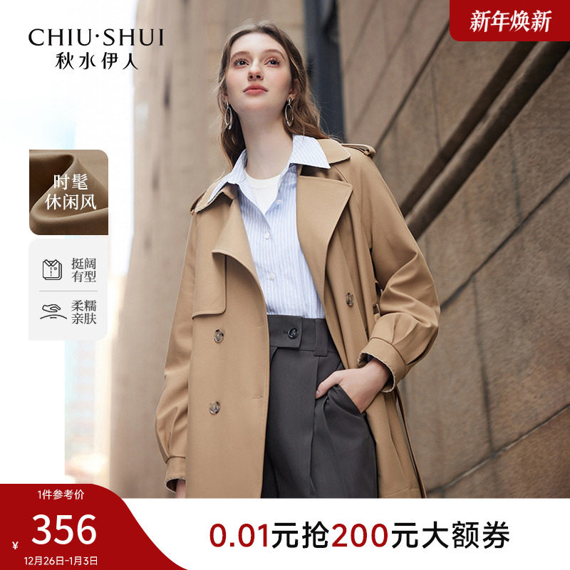 秋水伊人翻领风衣女外套休闲简约2025年秋冬新款百搭咖色通勤上衣