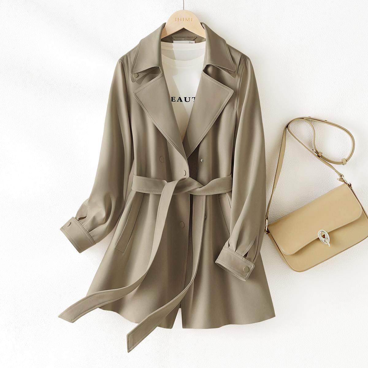 IHIMI海谧 25秋款简约通勤一手长系带翻领风衣智感松弛通勤风衣女