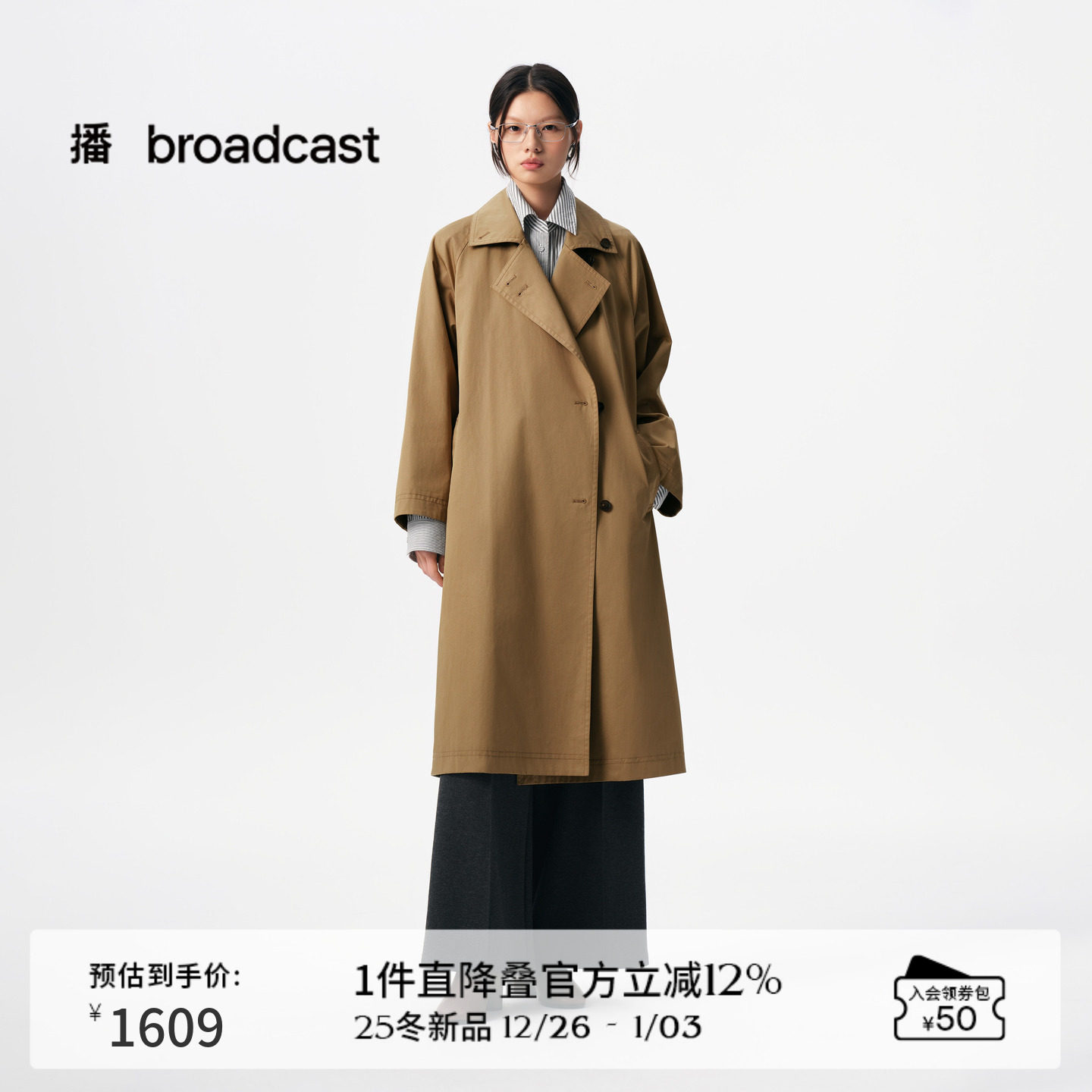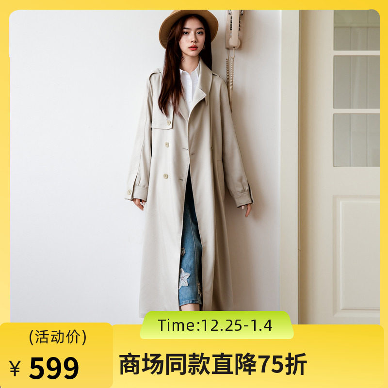 播商场同款中长款通勤风衣女25秋季新款复古休闲外套BDS3FD3082