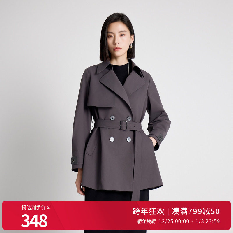 Navigare意大利小帆船短款风衣女士简约通勤外套小个子双排扣大衣