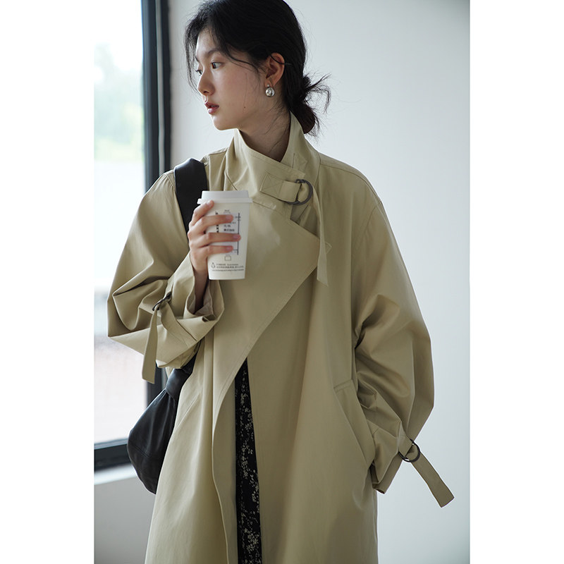 一三良品小个子 韩版宽松卡其色高级感通勤休闲长款风衣外套女秋