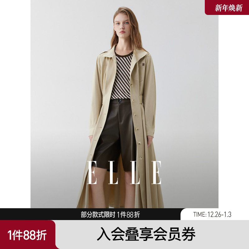 ELLE卡其色摩登通勤风衣女2025秋季新款收腰高级感气质长款外套