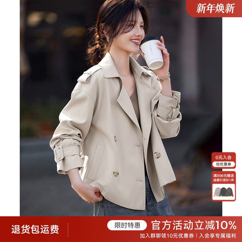 秋水伊人气质短款风衣外套女2025秋冬新款小个子翻领通勤百搭上衣