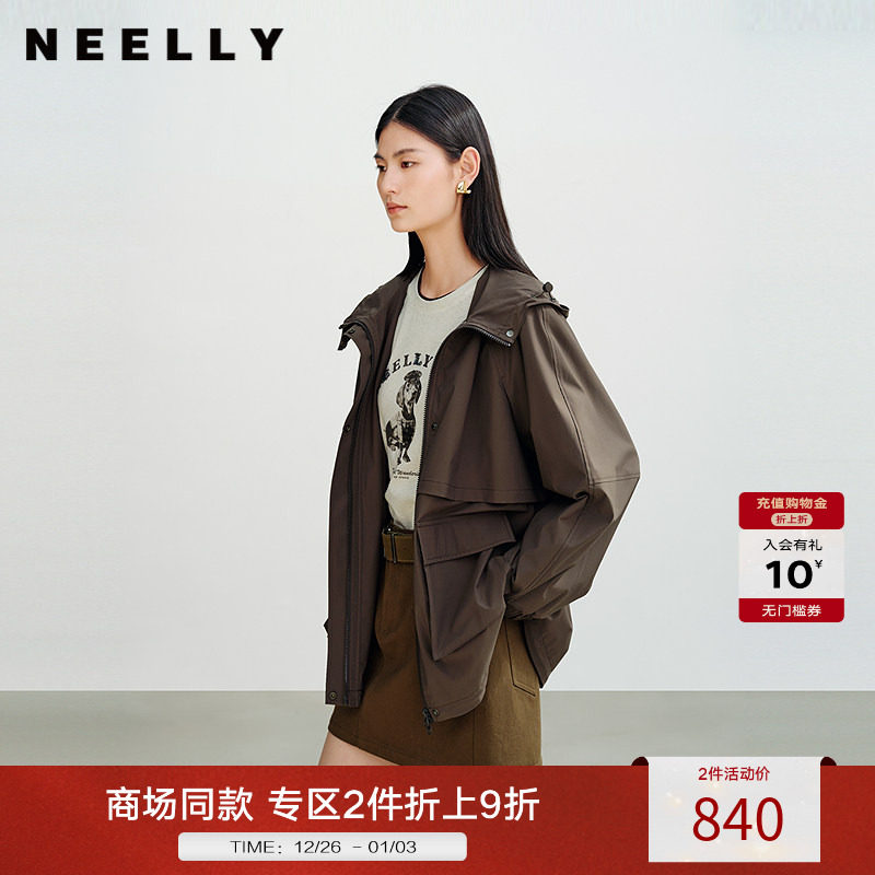 NEELLY纳俪商场同款秋冬新款休闲通勤风衣女简约时尚工装短款外套