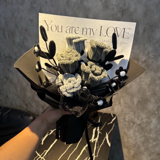 成品扭扭棒黑玫瑰花束手工编织拍照道具ins风复古送男友礼物七夕