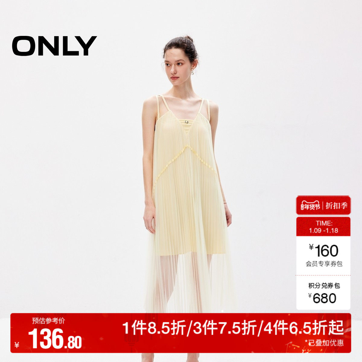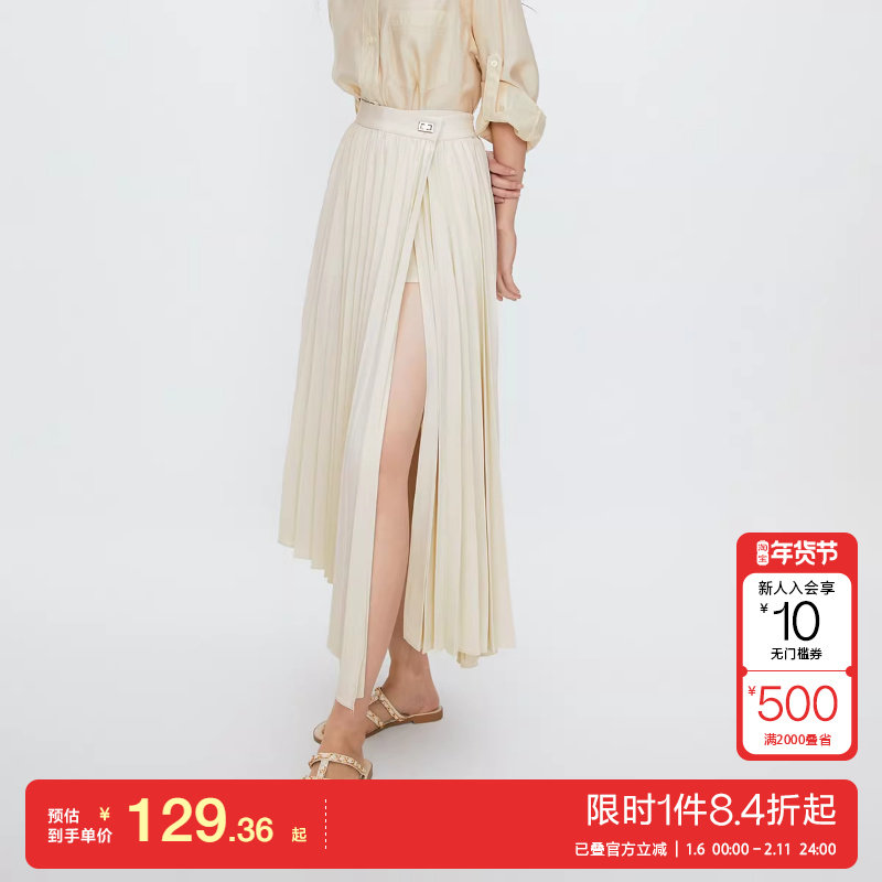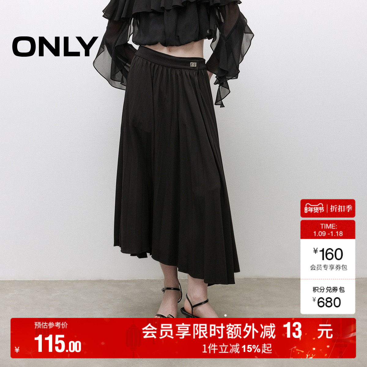oq区绫致ONLY秋冬新通勤风A字风琴百褶中长款半身裙女时尚